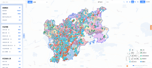 该负责人介绍,白云区城管局通过“5G+物联感知”,将公厕、垃圾压缩站等17万余个城市部件,环卫作业车、AI巡逻车等2.9万个城管物资,以及1万余名城管服务人员,全部纳入系统动态管理,实现“一网统管”。例如,通过“5G+北斗”车载设备实现了1万余台渣土车动态监管,物联数据实时回传,车辆轨迹精准记录,搭配自建的153个重点卡口、450余支高清摄像头,让建废偷倒乱倒无所遁形,守护绿色的人居环境。
